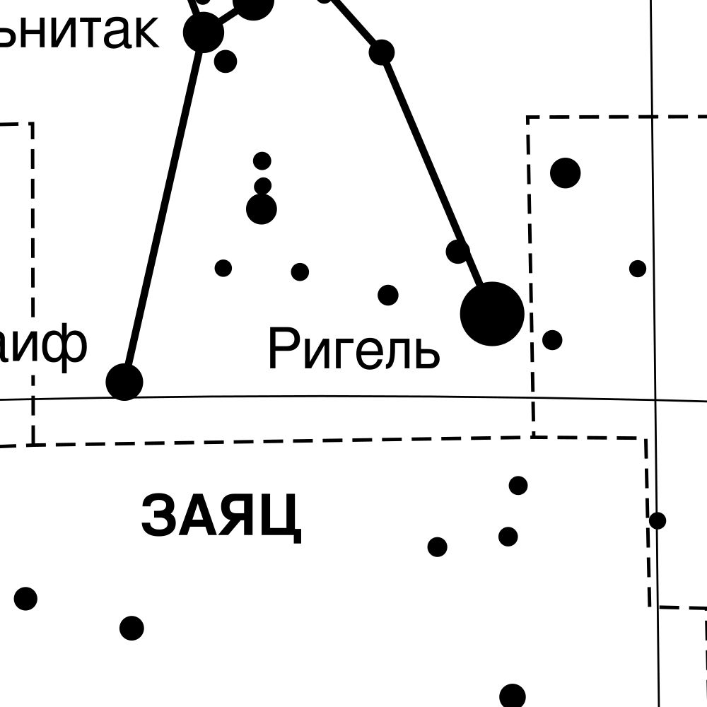 A poster featuring the Orion constellation chart in Russian (Орион).