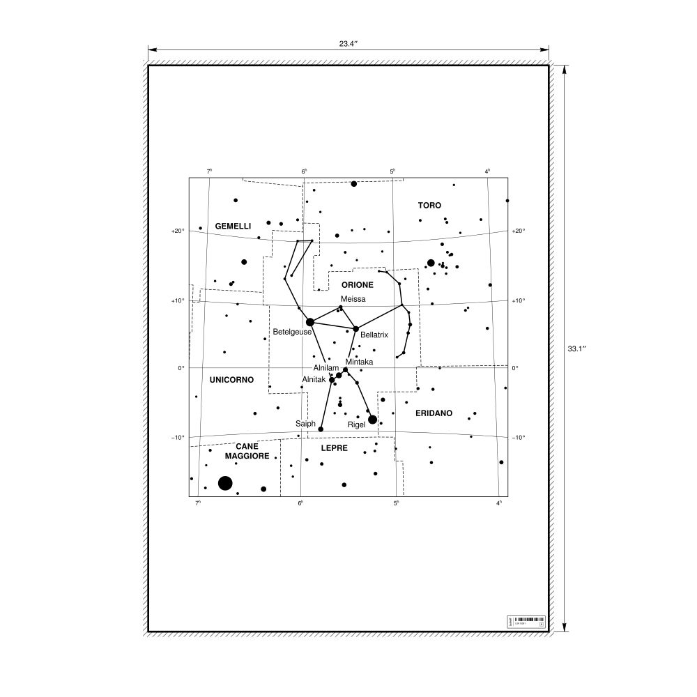 A poster featuring the Orion constellation chart in Italian (Orione).