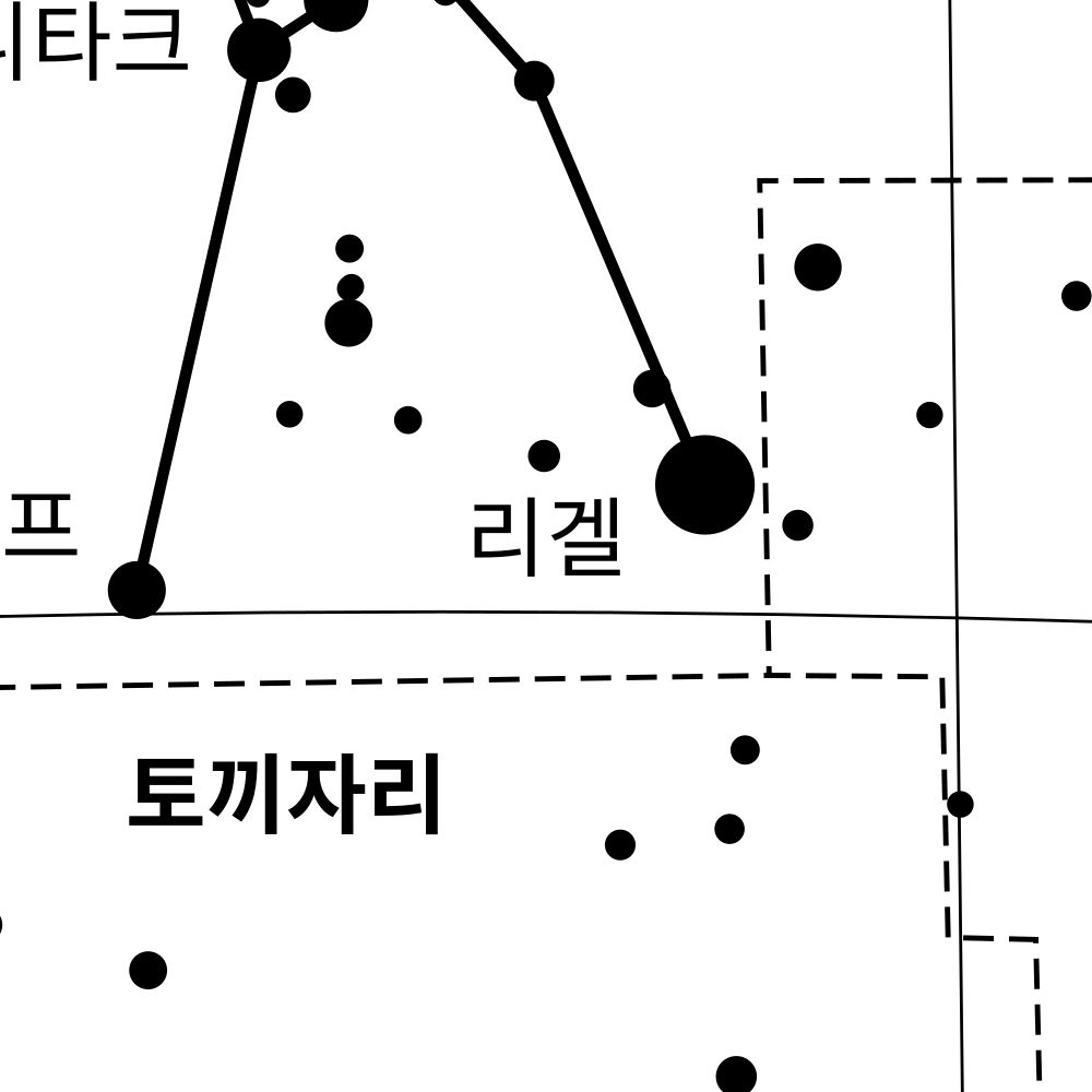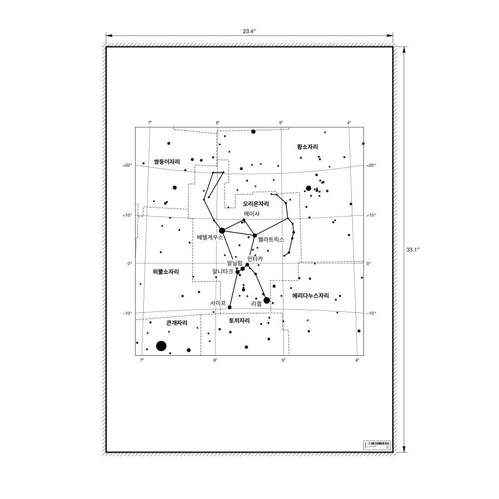 A poster featuring the Orion constellation chart in Korean (오리온자리).