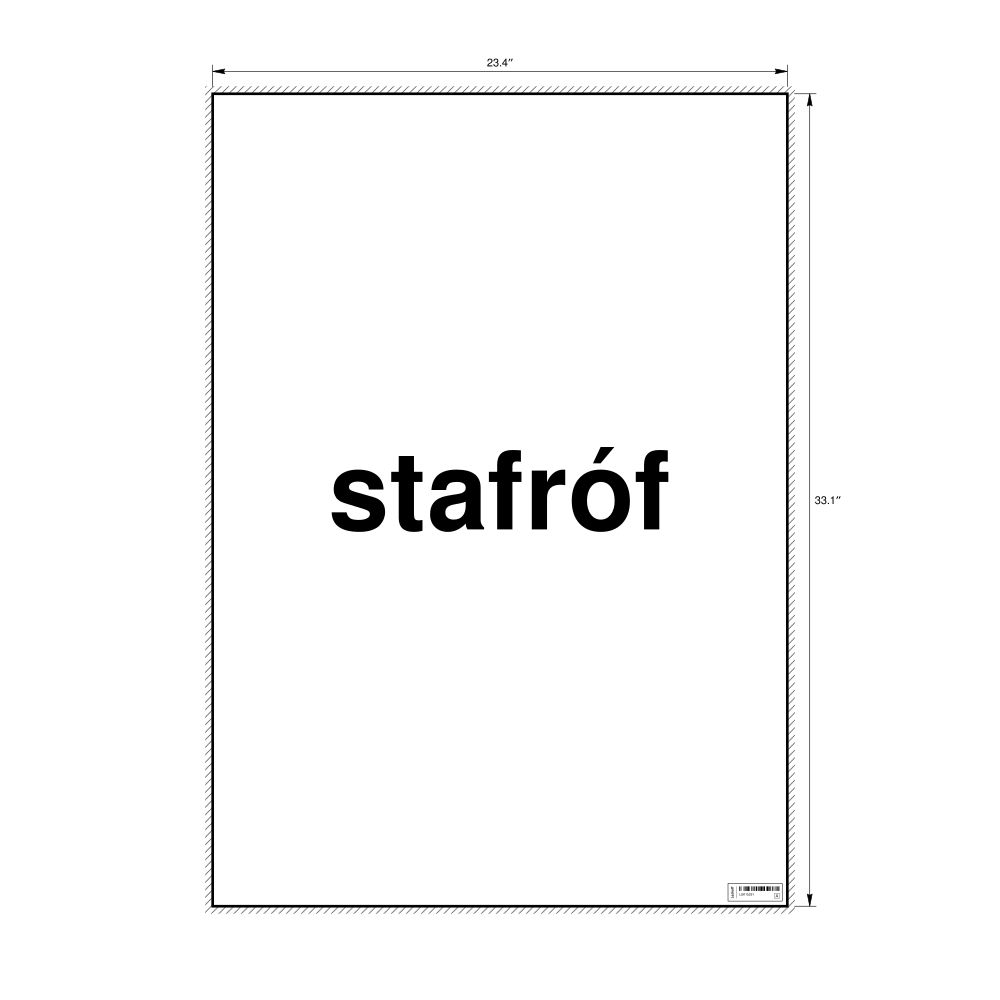 A poster featuring the word "stafróf".
