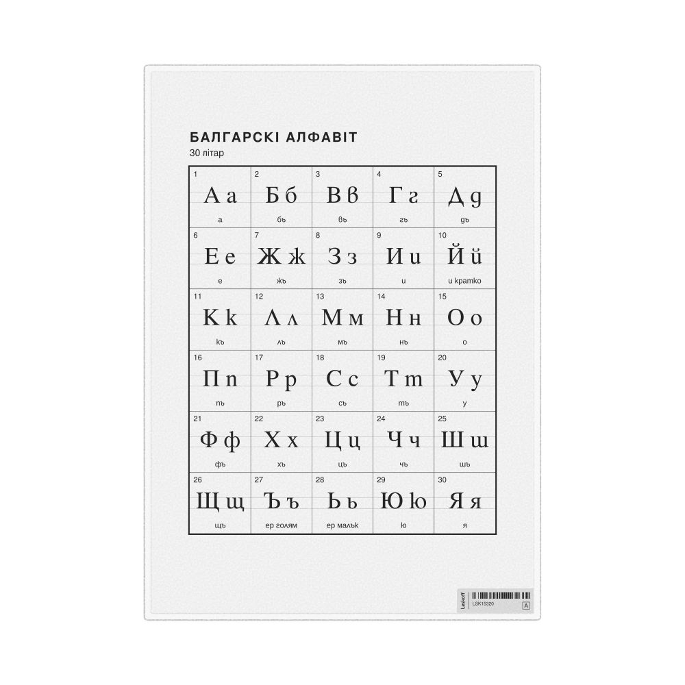 Bulgarian Alphabet Chart, 23.4 x 33.1 in (59.4 x 84.1 cm, Poster / Wall Chart), Belarusian-Labeled