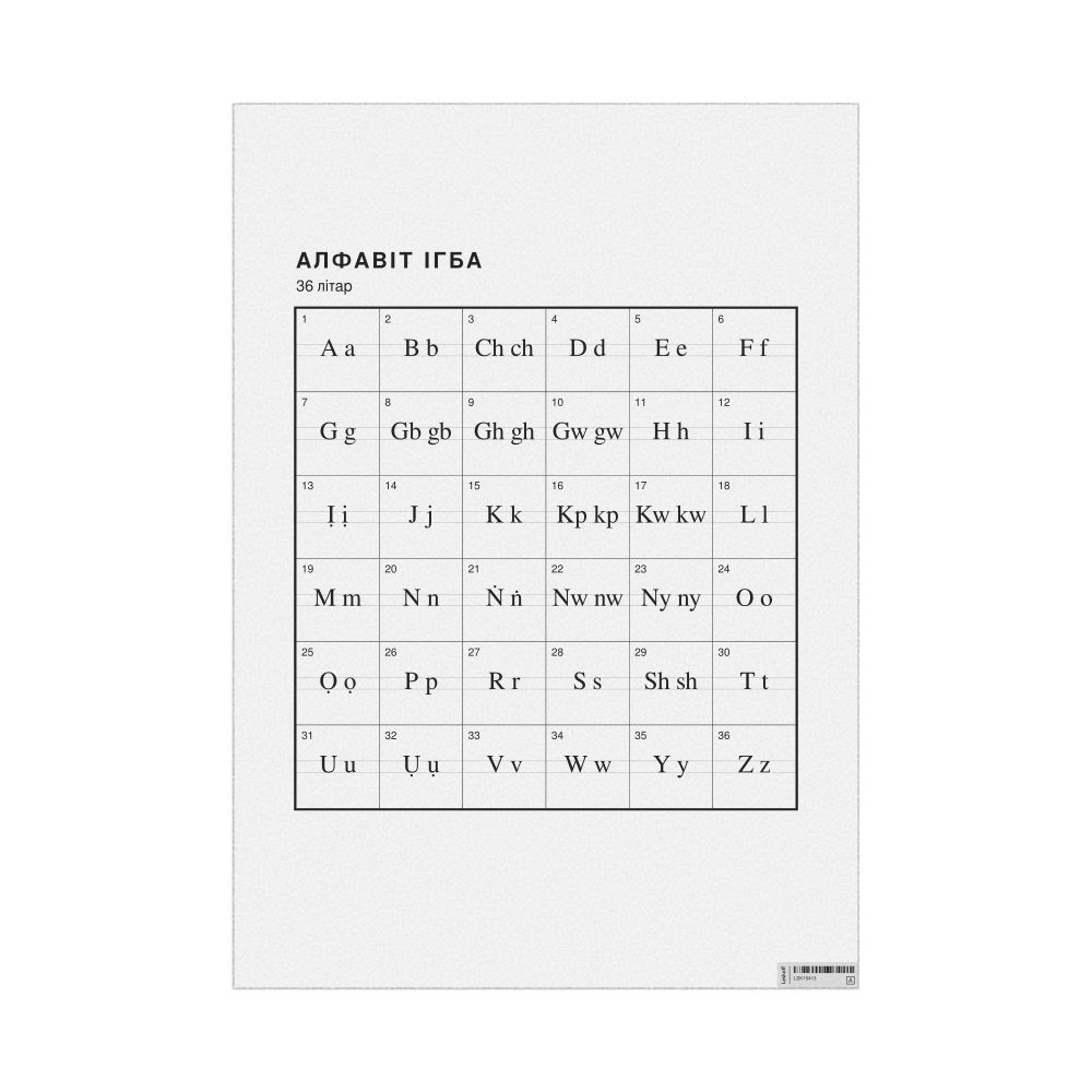 The Igbo alphabet chart (the full set of letters) labeled in Belarusian (Алфавіт ігба) in the 23.4 x 33.1 in (59.4 x 84.1 cm, poster / wall chart) format.