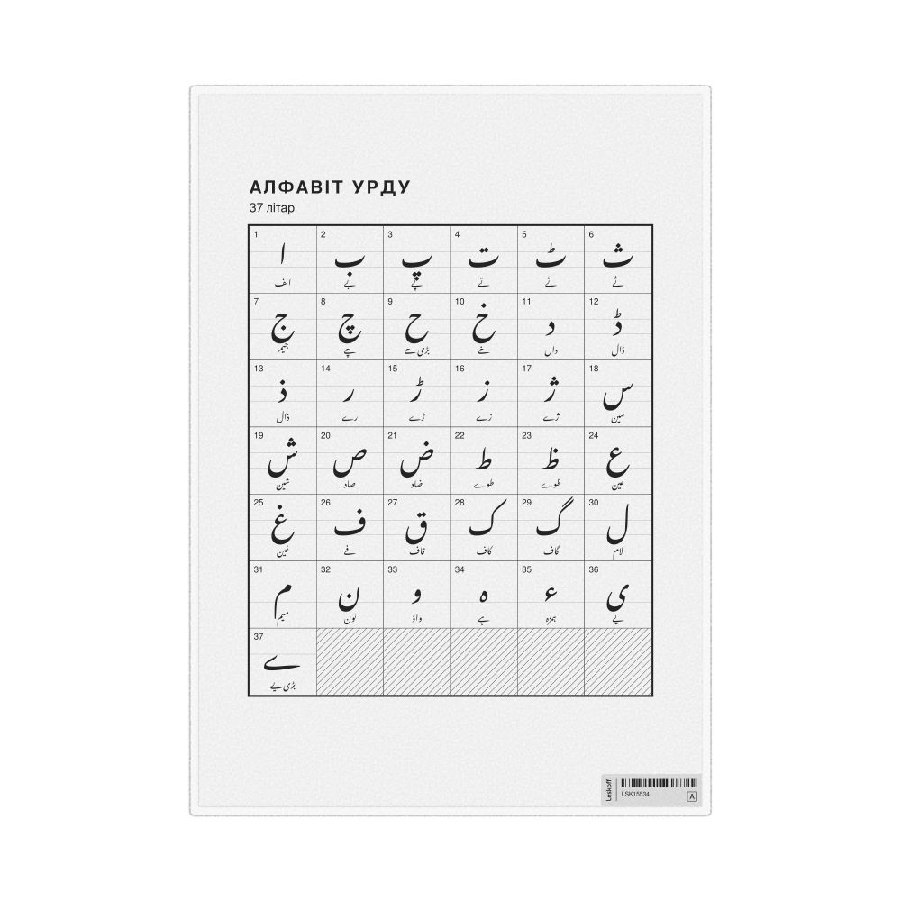 Urdu Alphabet Chart8.3 x 11.7 in (21.0 x 29.7 cm, Desk Chart, Laminated), Belarusian-Labeled