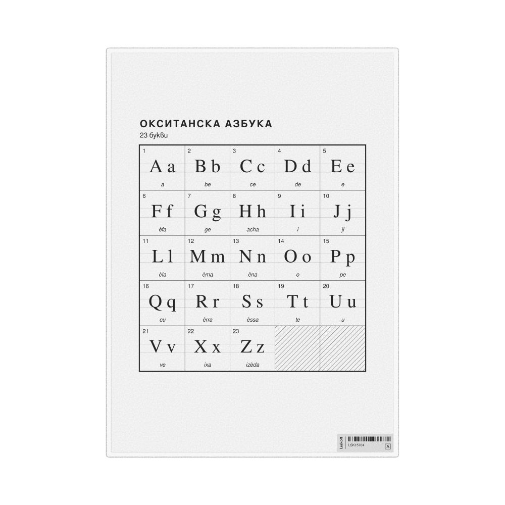 The Occitan alphabet chart (the full set of letters) labeled in Bulgarian (Окситанска азбука) in the 8.3 x 11.7 in (21.0 x 29.7 cm, desk chart, laminated) format.