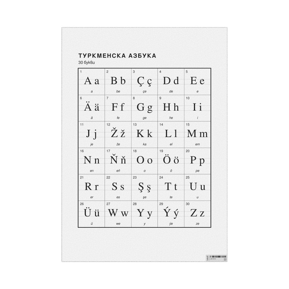 Turkmen Alphabet Chart23.4 x 33.1 in (59.4 x 84.1 cm, Poster / Wall Chart), Bulgarian-Labeled