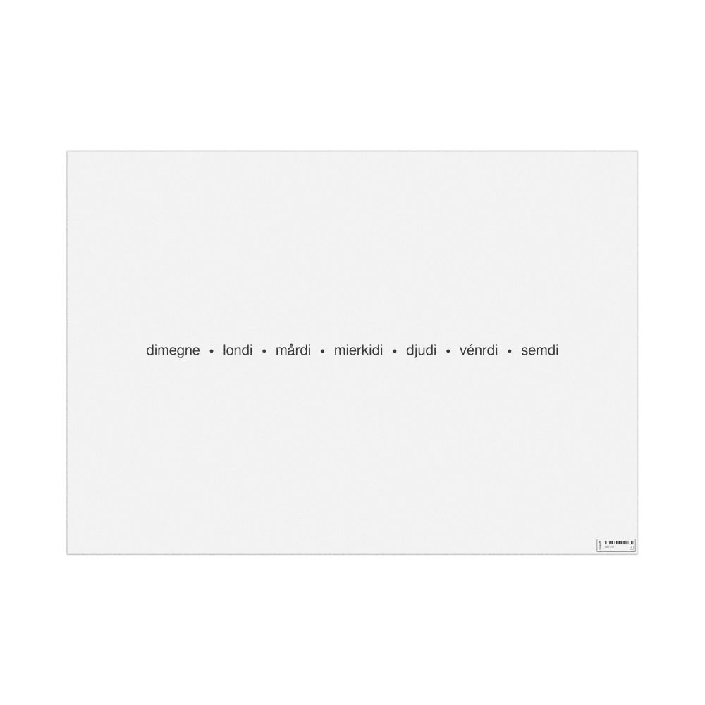 A poster of the days of the week in Walloon (Djoûs del samwinne).