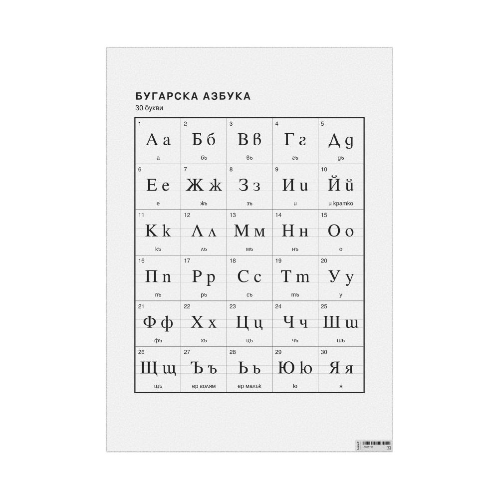 Bulgarian Alphabet Chart23.4 x 33.1 in (59.4 x 84.1 cm, Poster / Wall Chart), Macedonian-Labeled