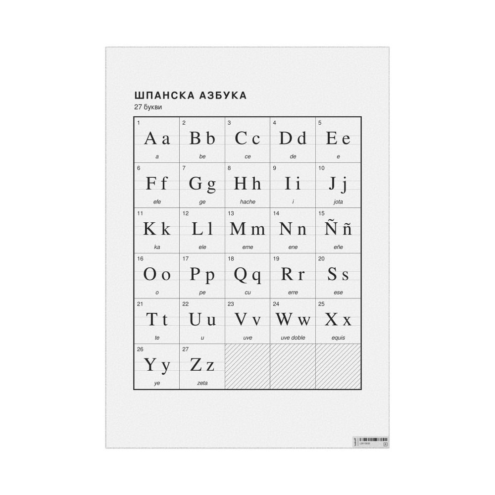 Spanish Alphabet Chart23.4 x 33.1 in (59.4 x 84.1 cm, Poster / Wall Chart), Macedonian-Labeled