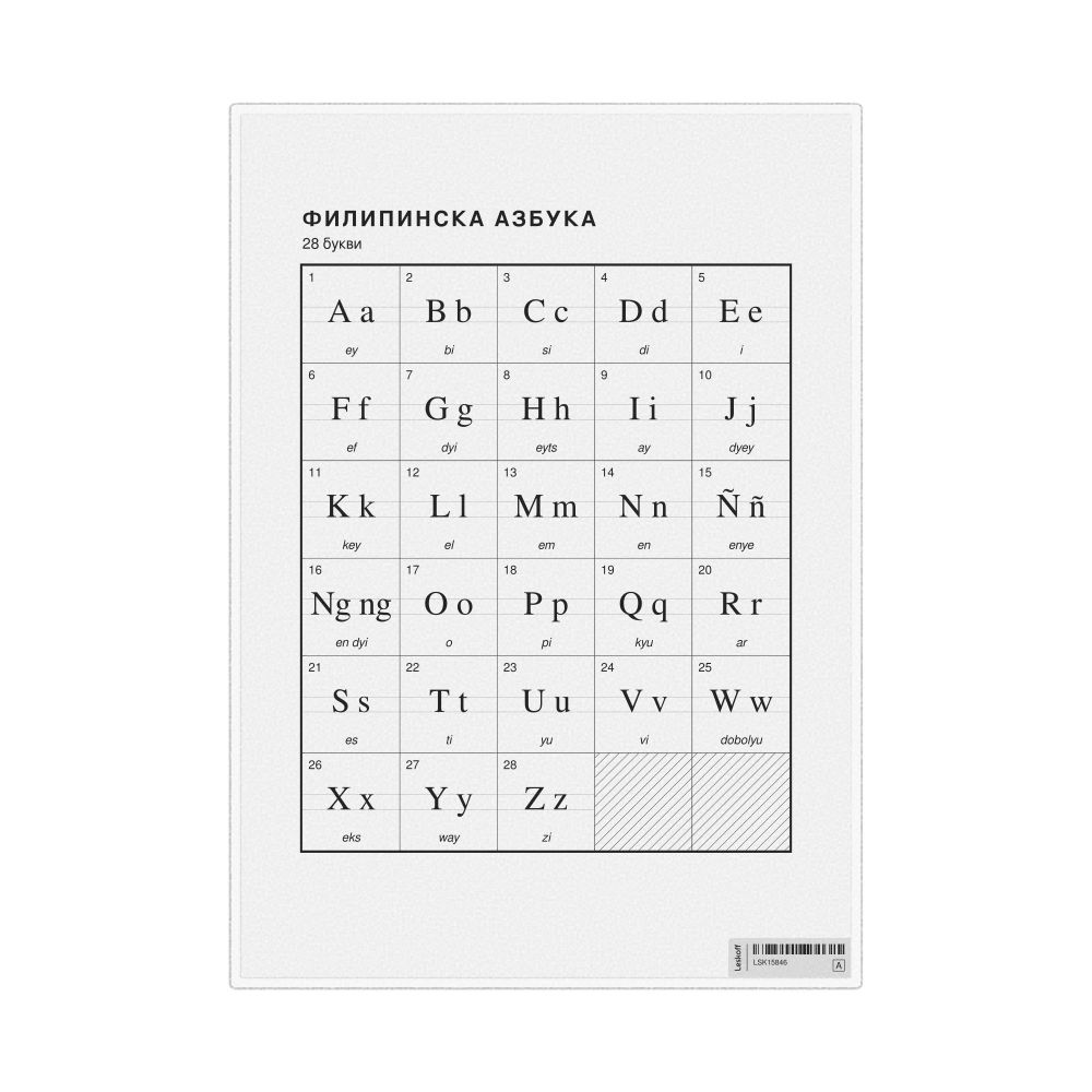 Filipino Alphabet Chart, 23.4 x 33.1 in (59.4 x 84.1 cm, Poster / Wall Chart), Macedonian-Labeled