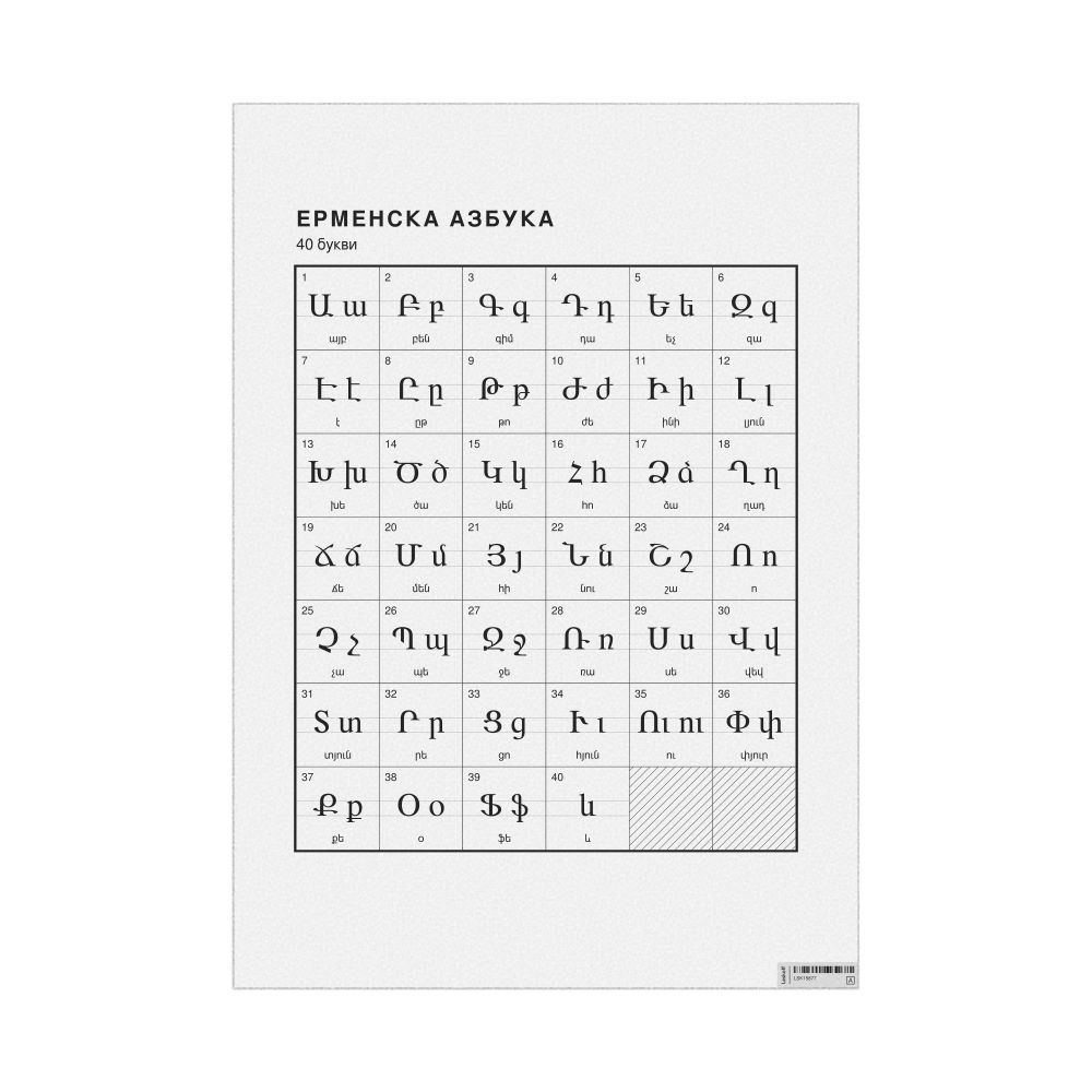 Armenian Alphabet Chart23.4 x 33.1 in (59.4 x 84.1 cm, Poster / Wall Chart), Macedonian-Labeled