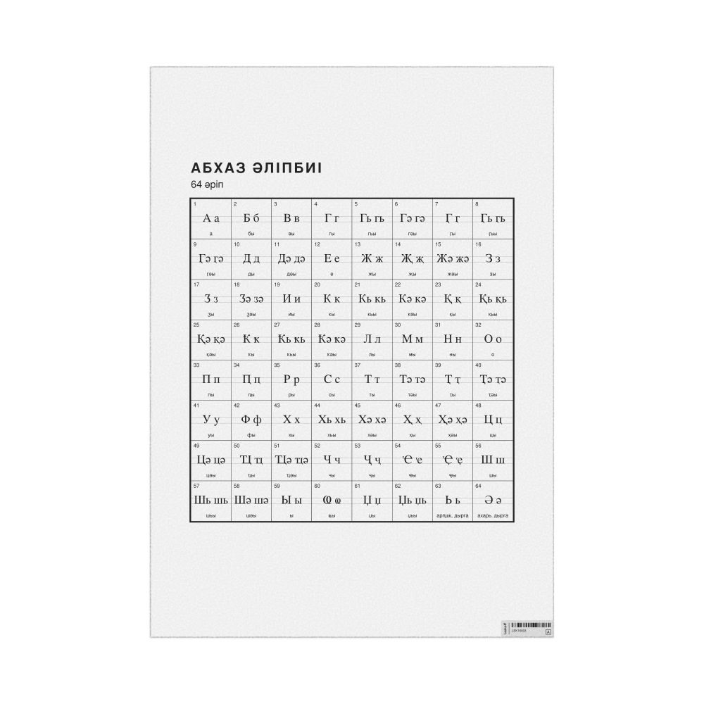 The Abkhaz alphabet chart (the full set of letters) labeled in Kazakh (Абхаз әліпбиі) in the 23.4 x 33.1 in (59.4 x 84.1 cm, poster / wall chart) format.