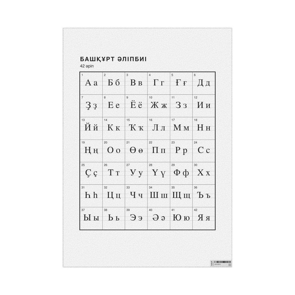 The Bashkir alphabet chart (the full set of letters) labeled in Kazakh (Башқұрт әліпбиі) in the 23.4 x 33.1 in (59.4 x 84.1 cm, poster / wall chart) format.