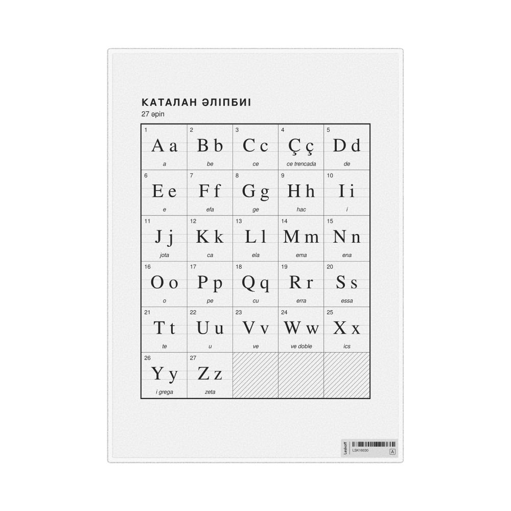 Catalan Alphabet Chart, 23.4 x 33.1 in (59.4 x 84.1 cm, Poster / Wall Chart), Kazakh-Labeled