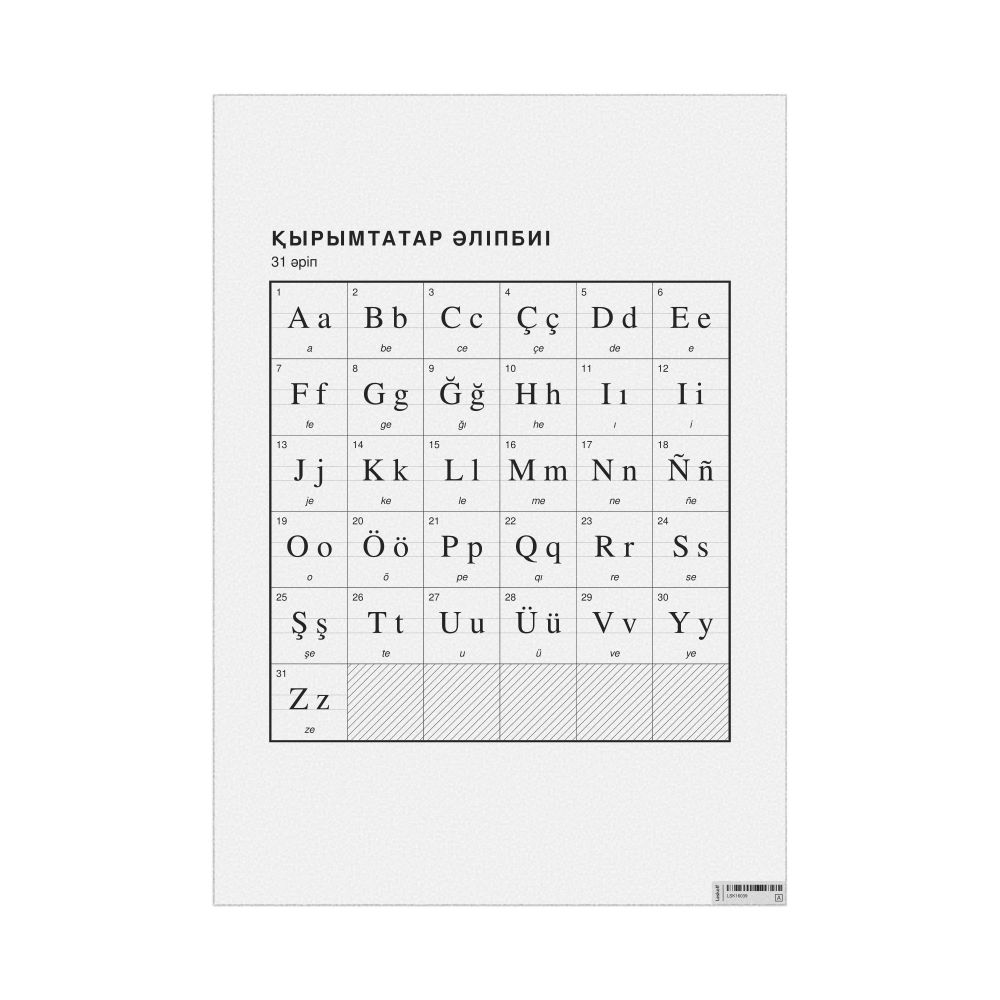 The Crimean Tatar alphabet chart (the full set of letters) labeled in Kazakh (Қырымтатар әліпбиі) in the 23.4 x 33.1 in (59.4 x 84.1 cm, poster / wall chart) format.