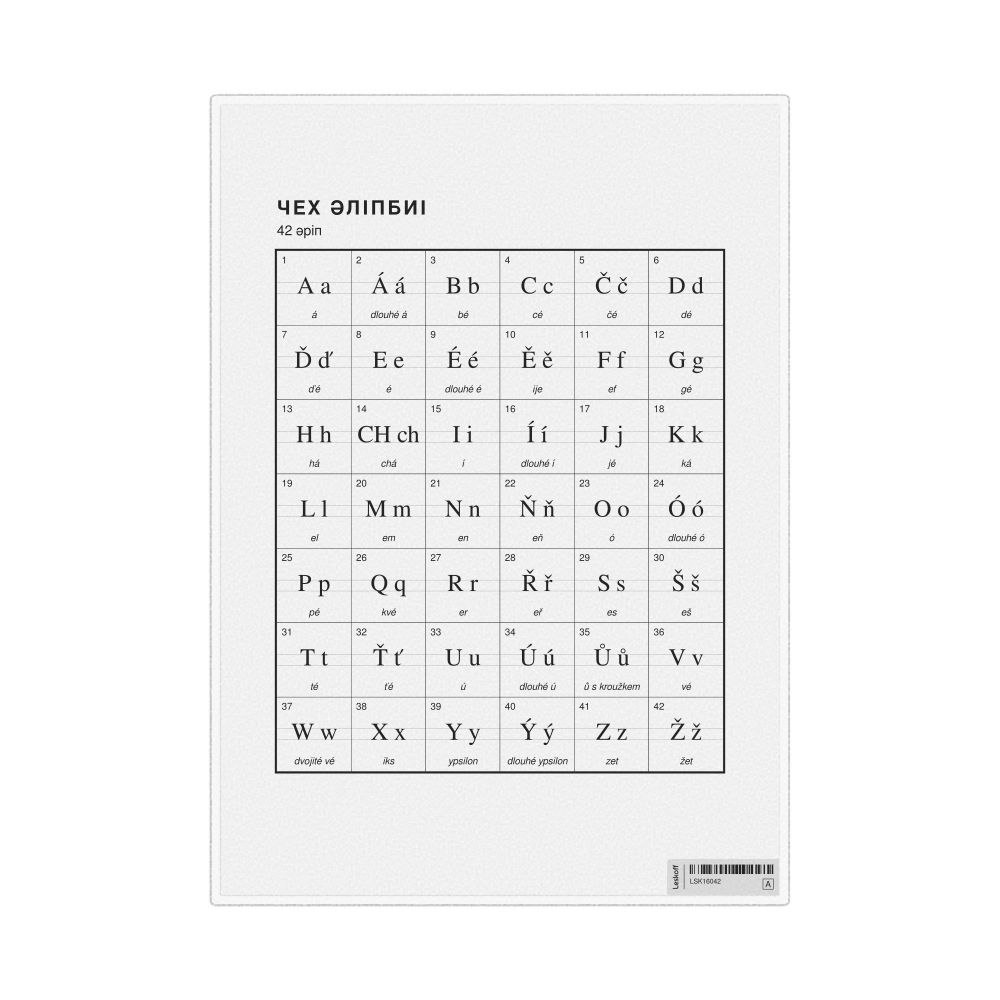 Czech Alphabet Chart8.3 x 11.7 in (21.0 x 29.7 cm, Desk Chart, Laminated), Kazakh-Labeled