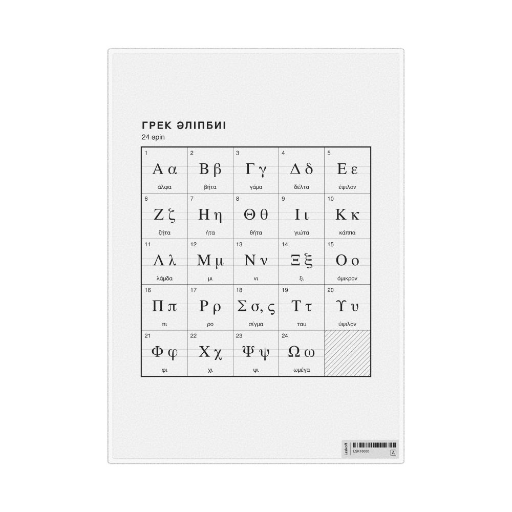 Greek Alphabet Chart, 23.4 x 33.1 in (59.4 x 84.1 cm, Poster / Wall Chart), Kazakh-Labeled
