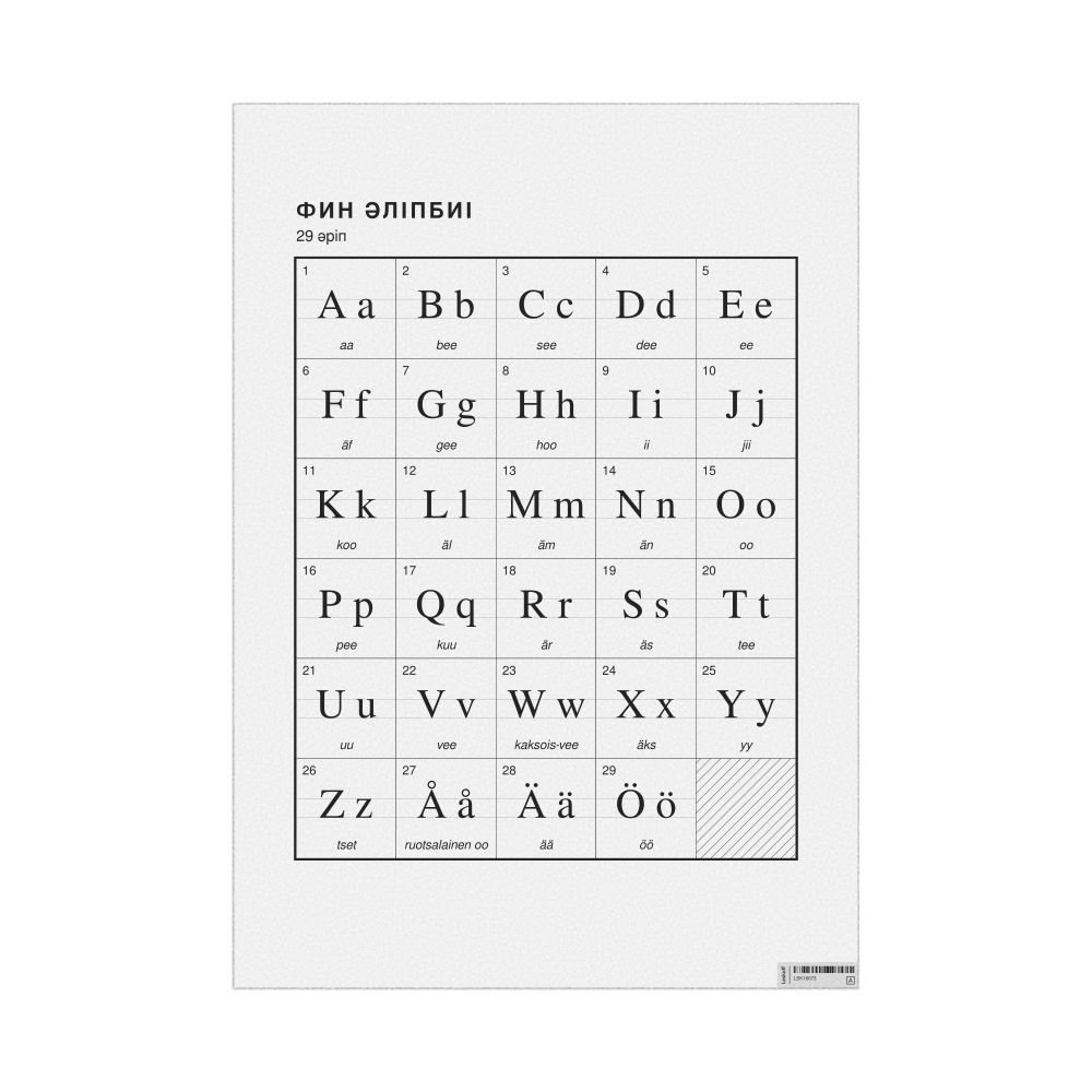 Finnish Alphabet Chart23.4 x 33.1 in (59.4 x 84.1 cm, Poster / Wall Chart), Kazakh-Labeled