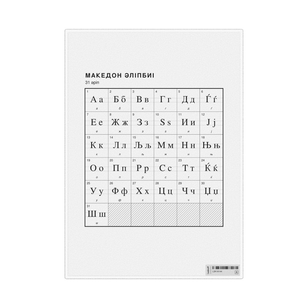 Macedonian Alphabet Chart, 23.4 x 33.1 in (59.4 x 84.1 cm, Poster / Wall Chart), Kazakh-Labeled