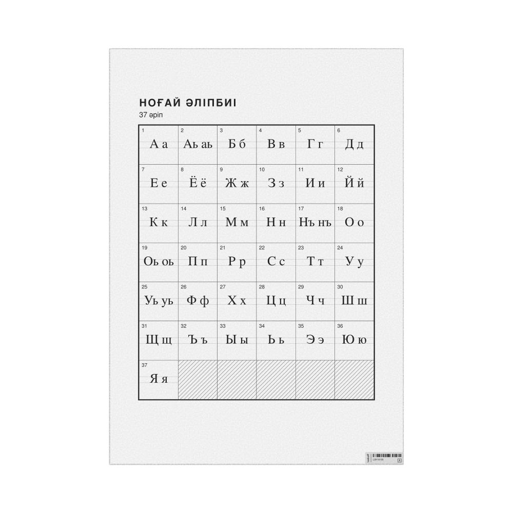The Nogai alphabet chart (the full set of letters) labeled in Kazakh (Ноғай әліпбиі) in the 23.4 x 33.1 in (59.4 x 84.1 cm, poster / wall chart) format.