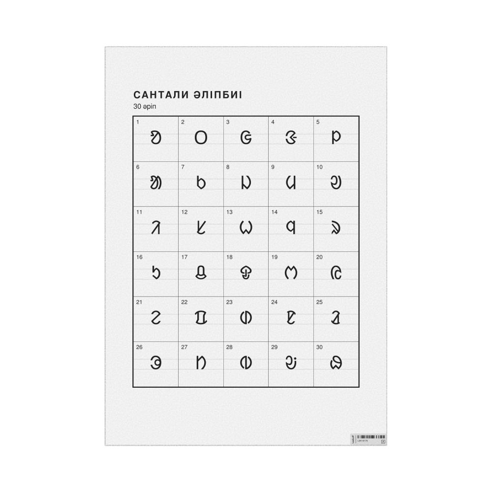The Santali alphabet chart (the full set of letters) labeled in Kazakh (Сантали әліпбиі) in the 23.4 x 33.1 in (59.4 x 84.1 cm, poster / wall chart) format.