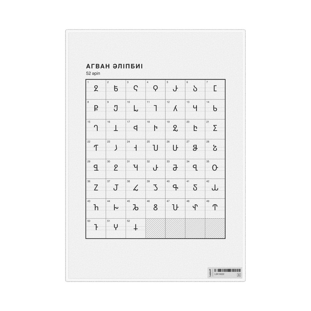 The Caucasian Albanian alphabet chart (the full set of letters) labeled in Kazakh (Агван әліпбиі) in the 8.3 x 11.7 in (21.0 x 29.7 cm, desk chart, laminated) format.
