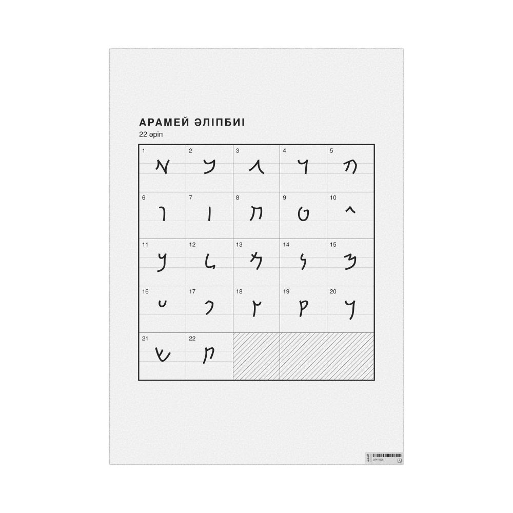The Aramaic alphabet chart (the full set of letters) labeled in Kazakh (Арамей әліпбиі) in the 23.4 x 33.1 in (59.4 x 84.1 cm, poster / wall chart) format.