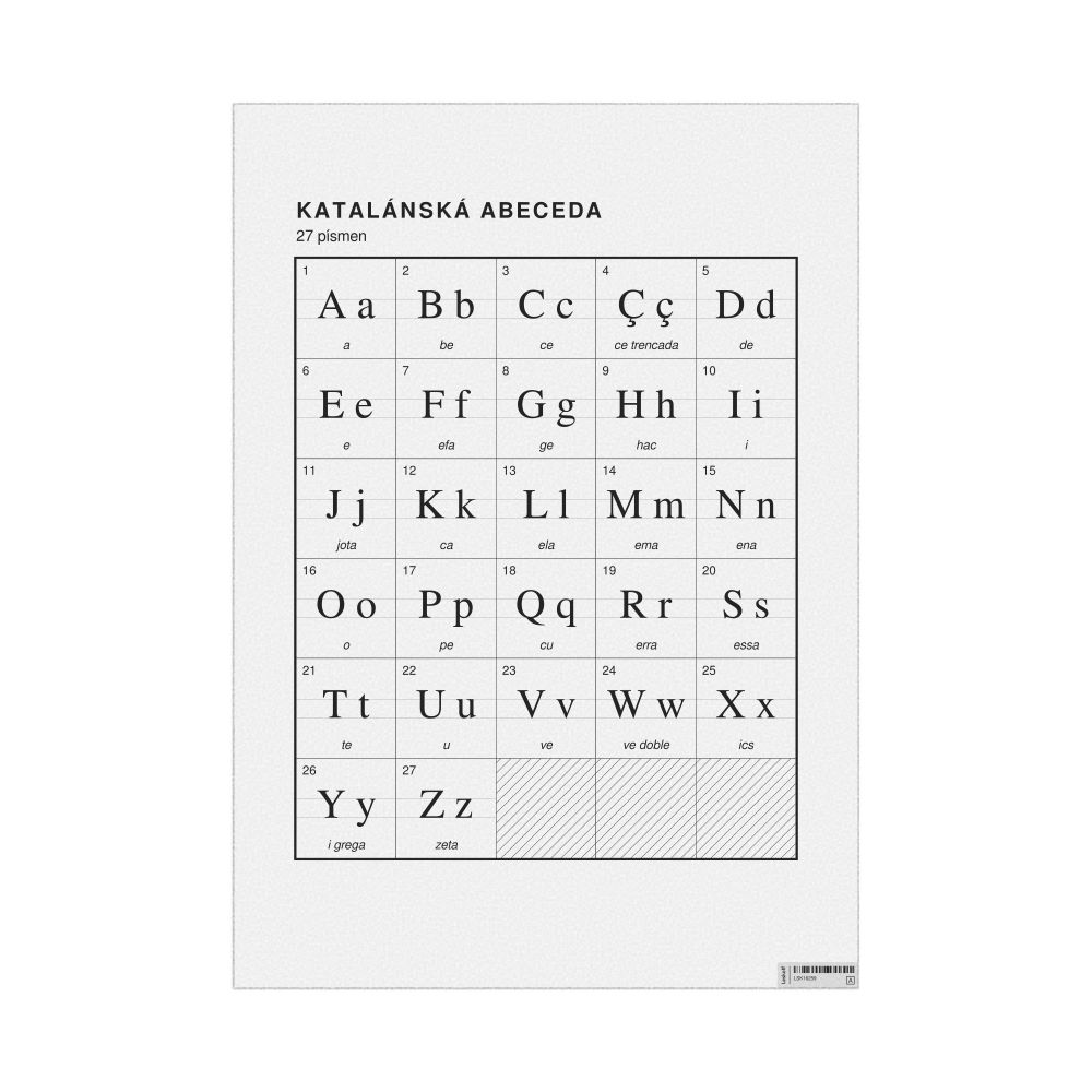 - Linguists and philologists - For both professionals and hobbyists, this alphabet print serves as a piece of linguistic art that presents the character inventory of Catalan as a linguistic (graphemic) dataset. Add this to your Catalan collection to complement your studies and research. A mixture of Catalan letters and Czech metatext makes it a unique, visually intriguing illustration of linguistic diversity and interaction.