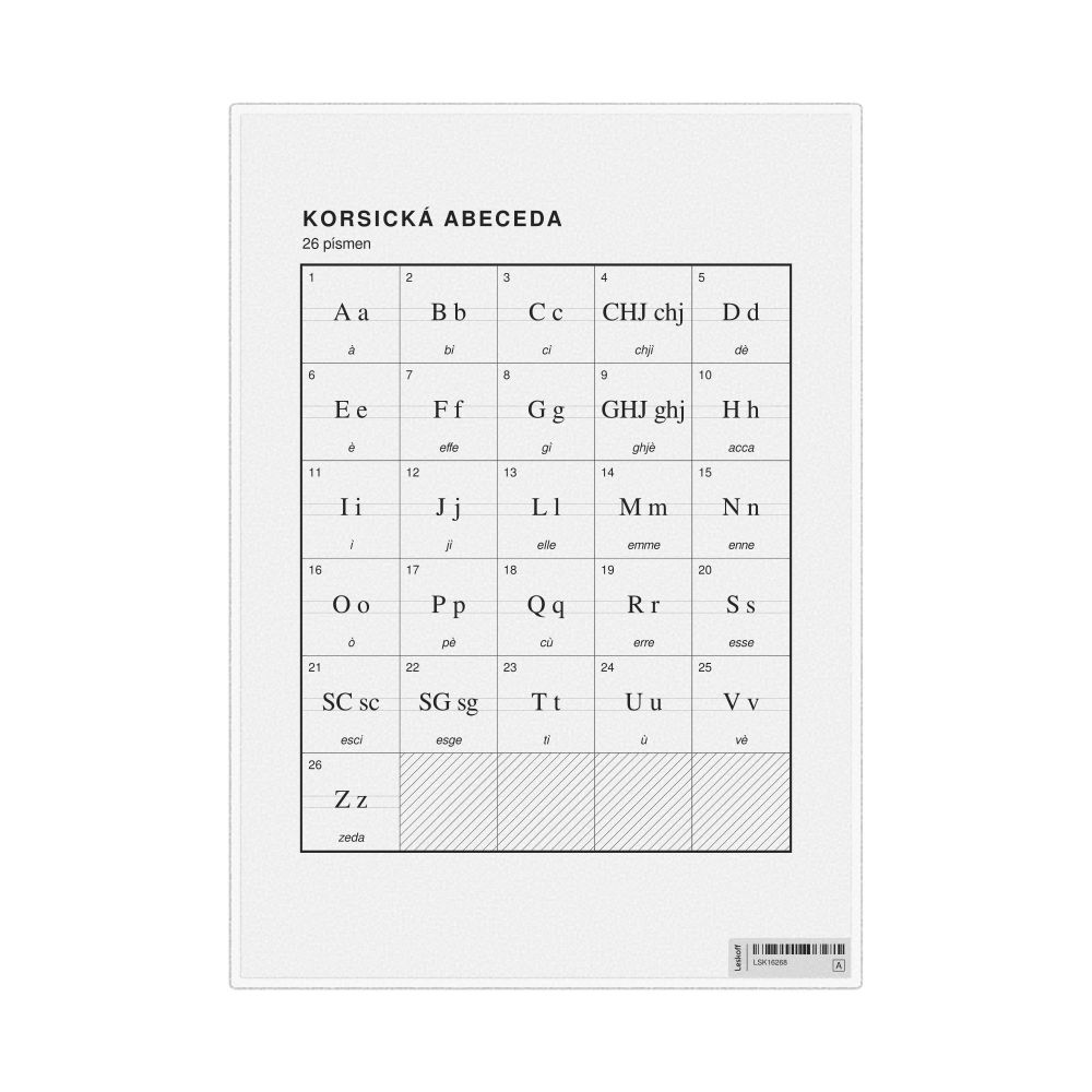 Corsican Alphabet Chart8.3 x 11.7 in (21.0 x 29.7 cm, Desk Chart, Laminated), Czech-Labeled