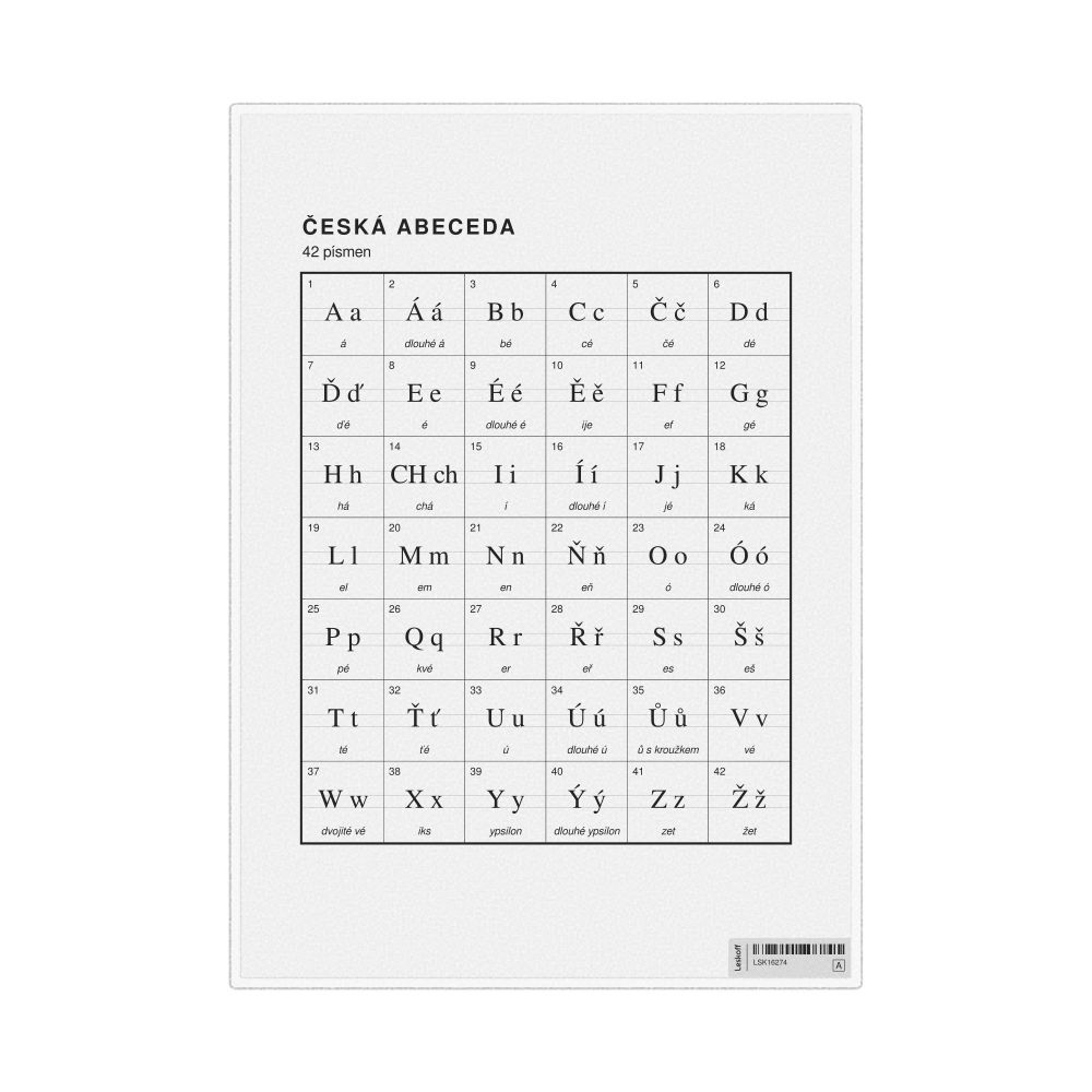 Czech Alphabet Chart8.3 x 11.7 in (21.0 x 29.7 cm, Desk Chart, Laminated), Czech-Labeled