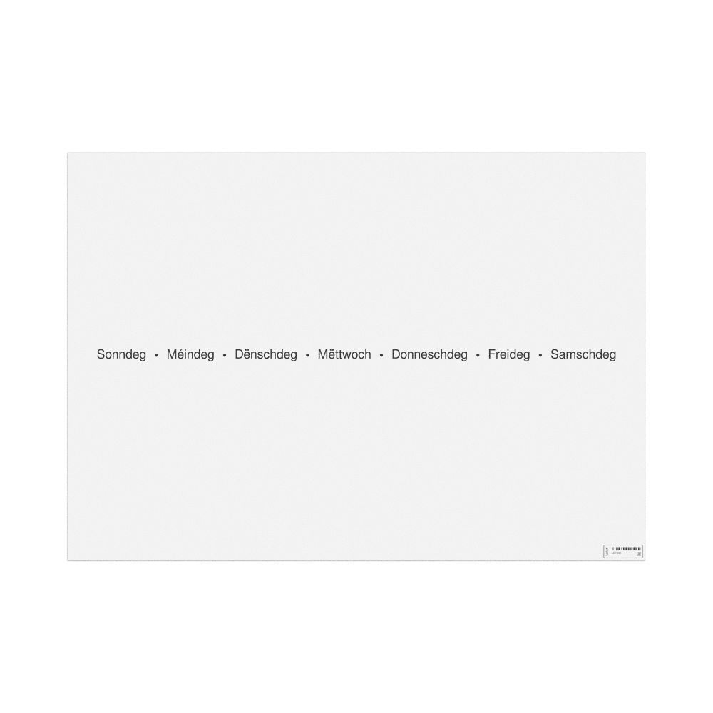 A poster of the days of the week in Luxembourgish (Wochendeeg).