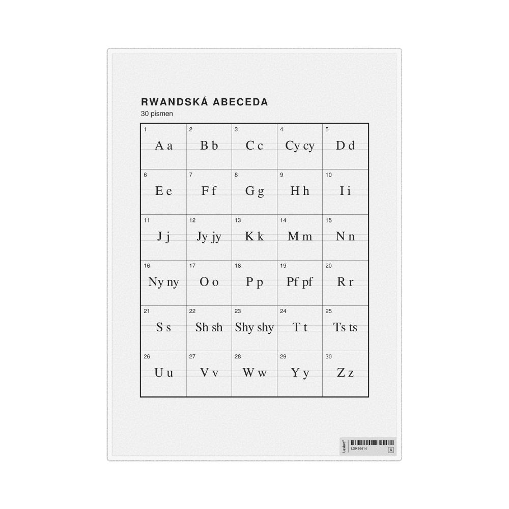 - Linguists and philologists - For both professionals and hobbyists, this alphabet print serves as a piece of linguistic art that presents the character inventory of Kinyarwanda as a linguistic (graphemic) dataset. Add this to your Kinyarwanda collection to complement your studies and research. A mixture of Kinyarwanda letters and Czech metatext makes it a unique, visually intriguing illustration of linguistic diversity and interaction.