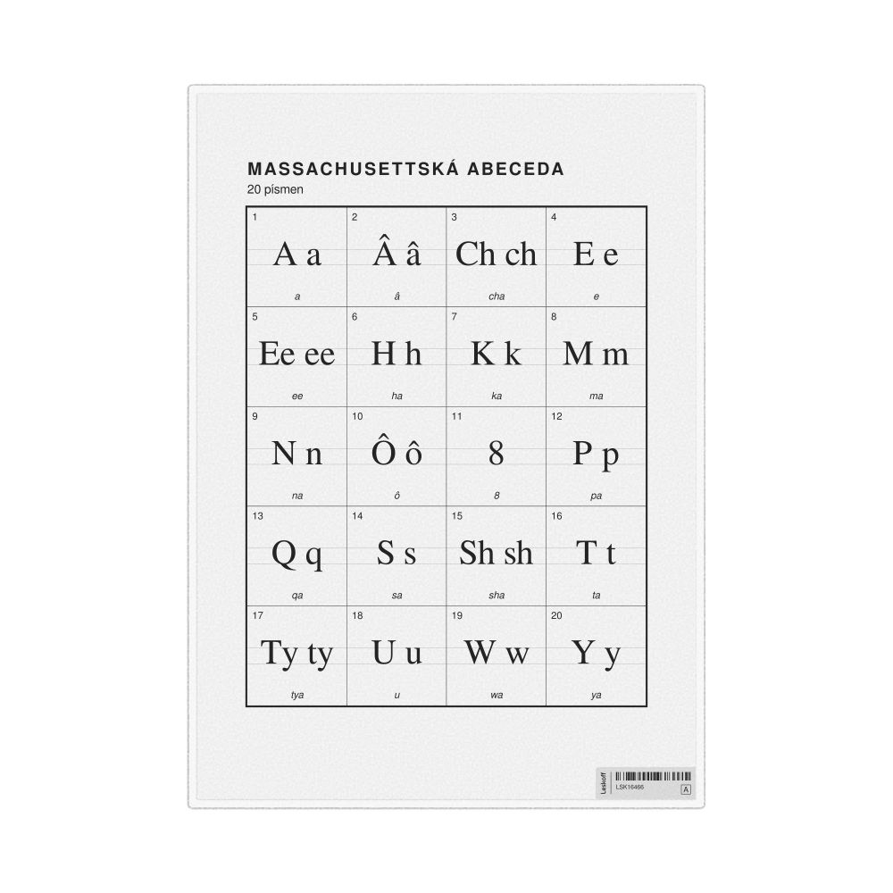 Massachusett Alphabet Chart, 23.4 x 33.1 in (59.4 x 84.1 cm, Poster / Wall Chart), Czech-Labeled