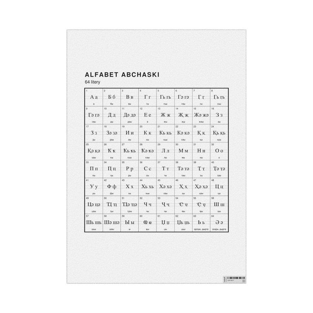 The Abkhaz alphabet chart (the full set of letters) labeled in Polish (Alfabet abchaski) in the 23.4 x 33.1 in (59.4 x 84.1 cm, poster / wall chart) format.