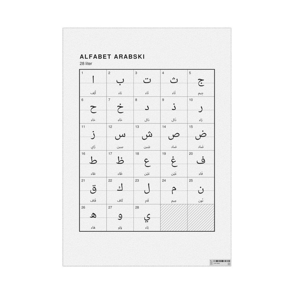 The Arabic alphabet chart (the full set of letters) labeled in Polish (Alfabet arabski) in the 23.4 x 33.1 in (59.4 x 84.1 cm, poster / wall chart) format.