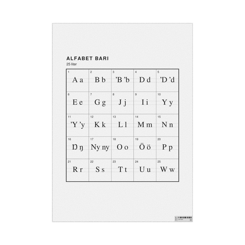 The Bari alphabet chart (the full set of letters) labeled in Polish (Alfabet bari) in the 23.4 x 33.1 in (59.4 x 84.1 cm, poster / wall chart) format.