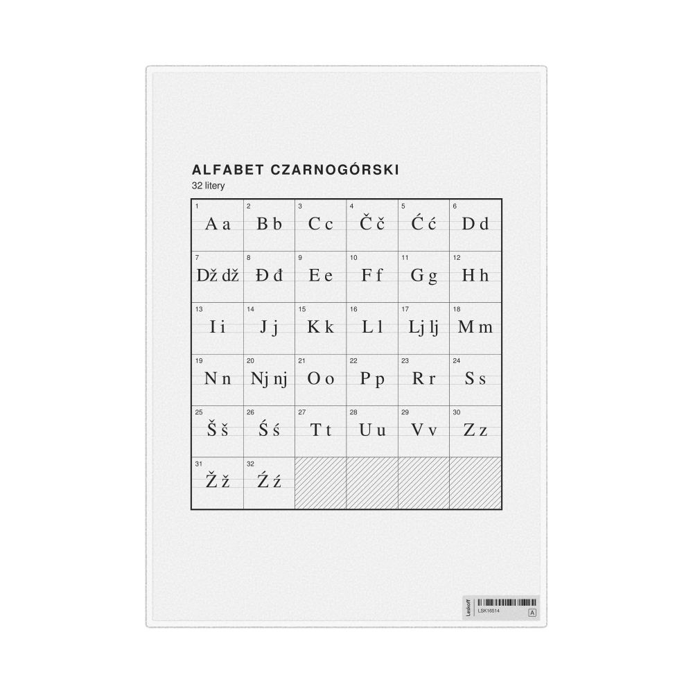 Montenegrin Alphabet Chart, 23.4 x 33.1 in (59.4 x 84.1 cm, Poster / Wall Chart), Polish-Labeled