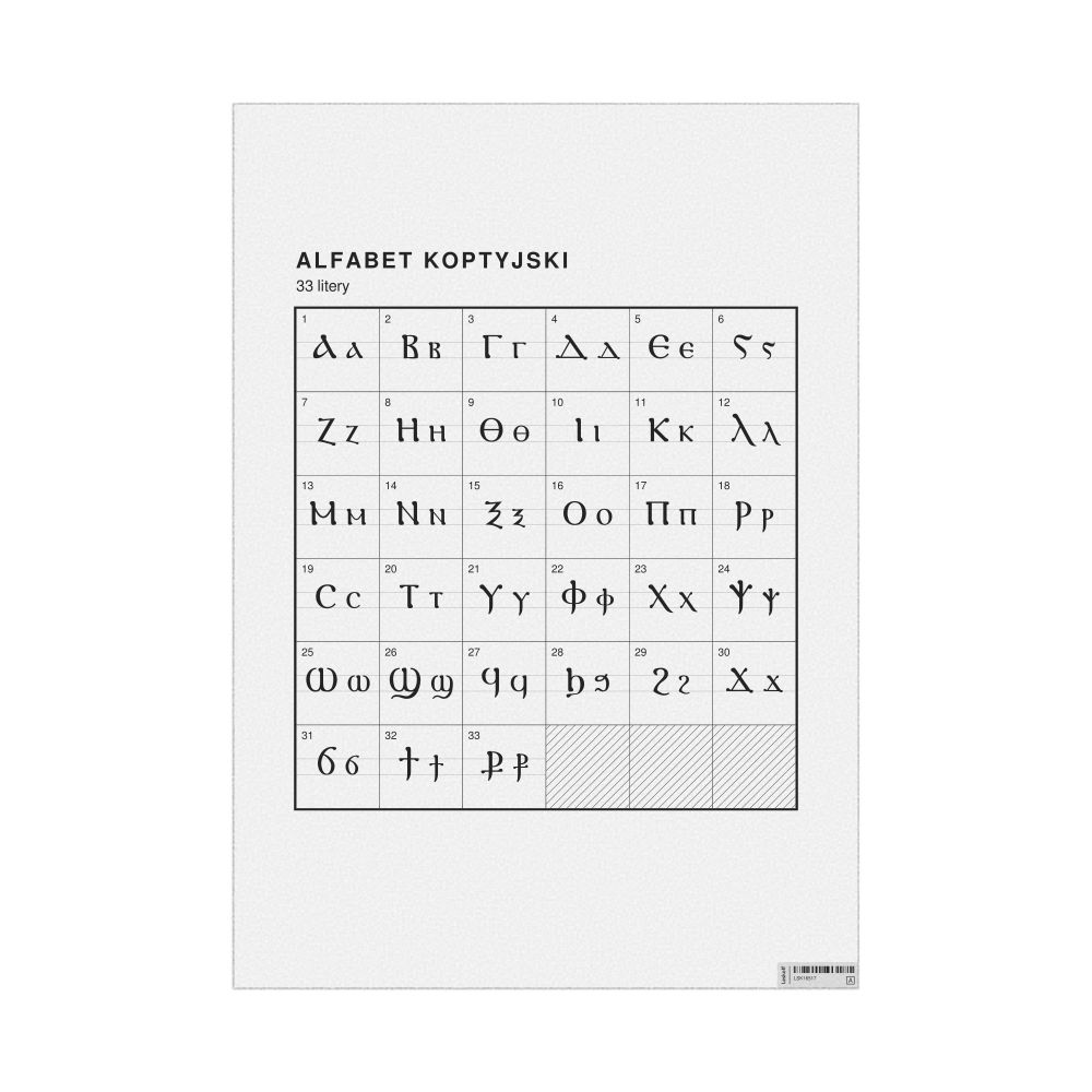 The Coptic alphabet chart (the full set of letters) labeled in Polish (Alfabet koptyjski) in the 23.4 x 33.1 in (59.4 x 84.1 cm, poster / wall chart) format.