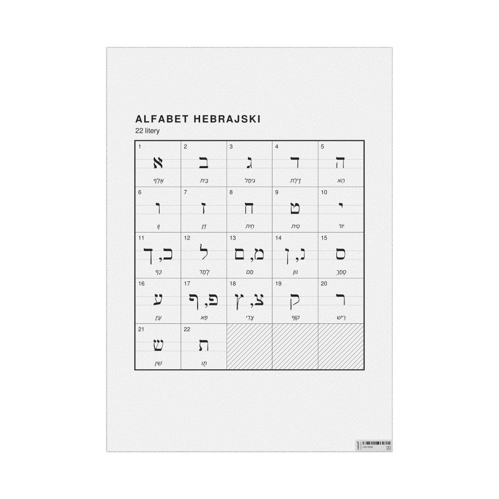 Hebrew Alphabet Chart23.4 x 33.1 in (59.4 x 84.1 cm, Poster / Wall Chart), Polish-Labeled