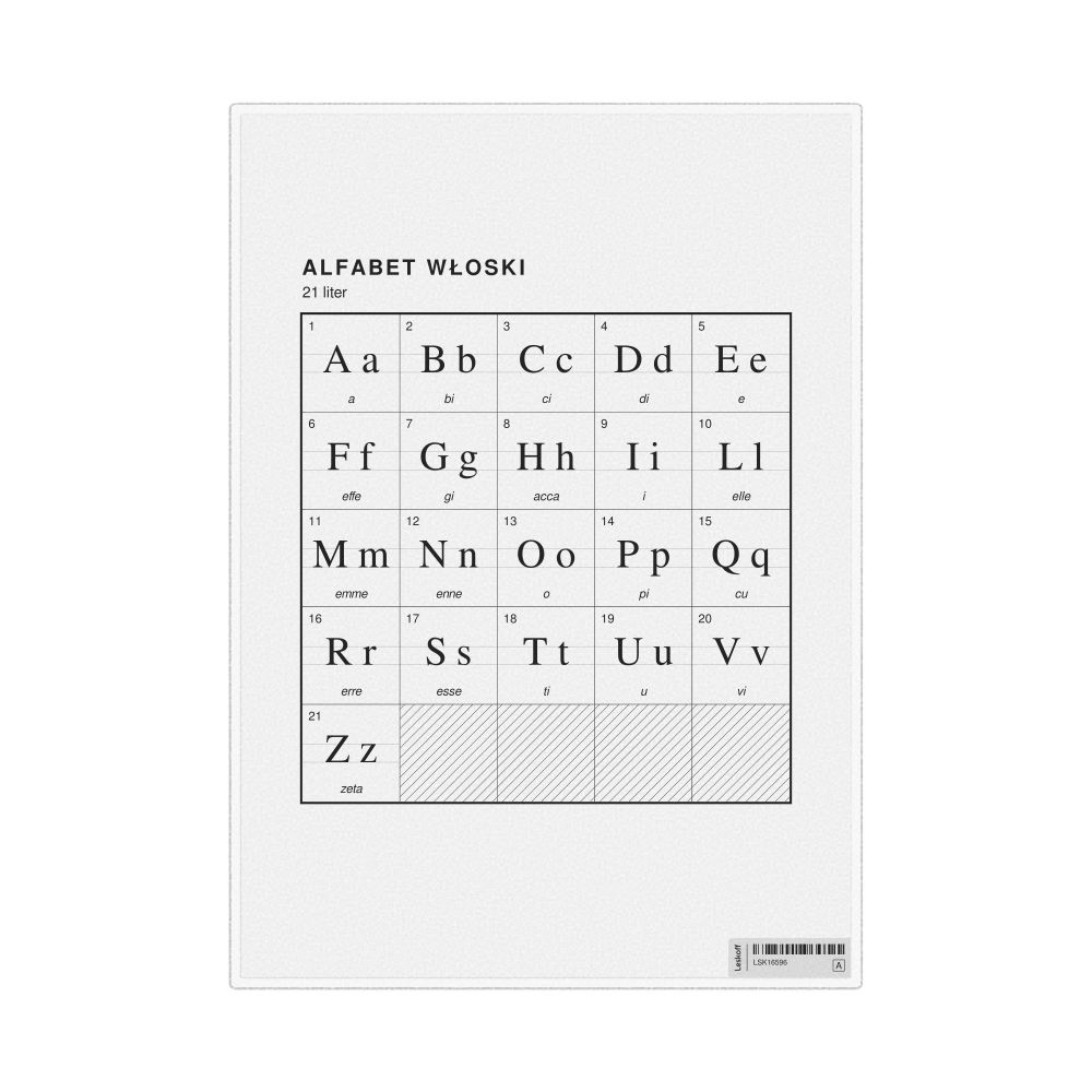 The Italian alphabet chart (the full set of letters) labeled in Polish (Alfabet włoski) in the 8.3 x 11.7 in (21.0 x 29.7 cm, desk chart, laminated) format.