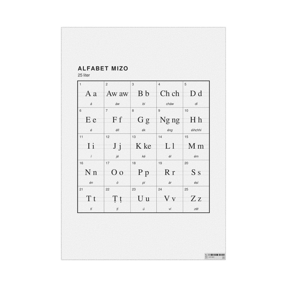The Mizo alphabet chart (the full set of letters) labeled in Polish (Alfabet mizo) in the 23.4 x 33.1 in (59.4 x 84.1 cm, poster / wall chart) format.