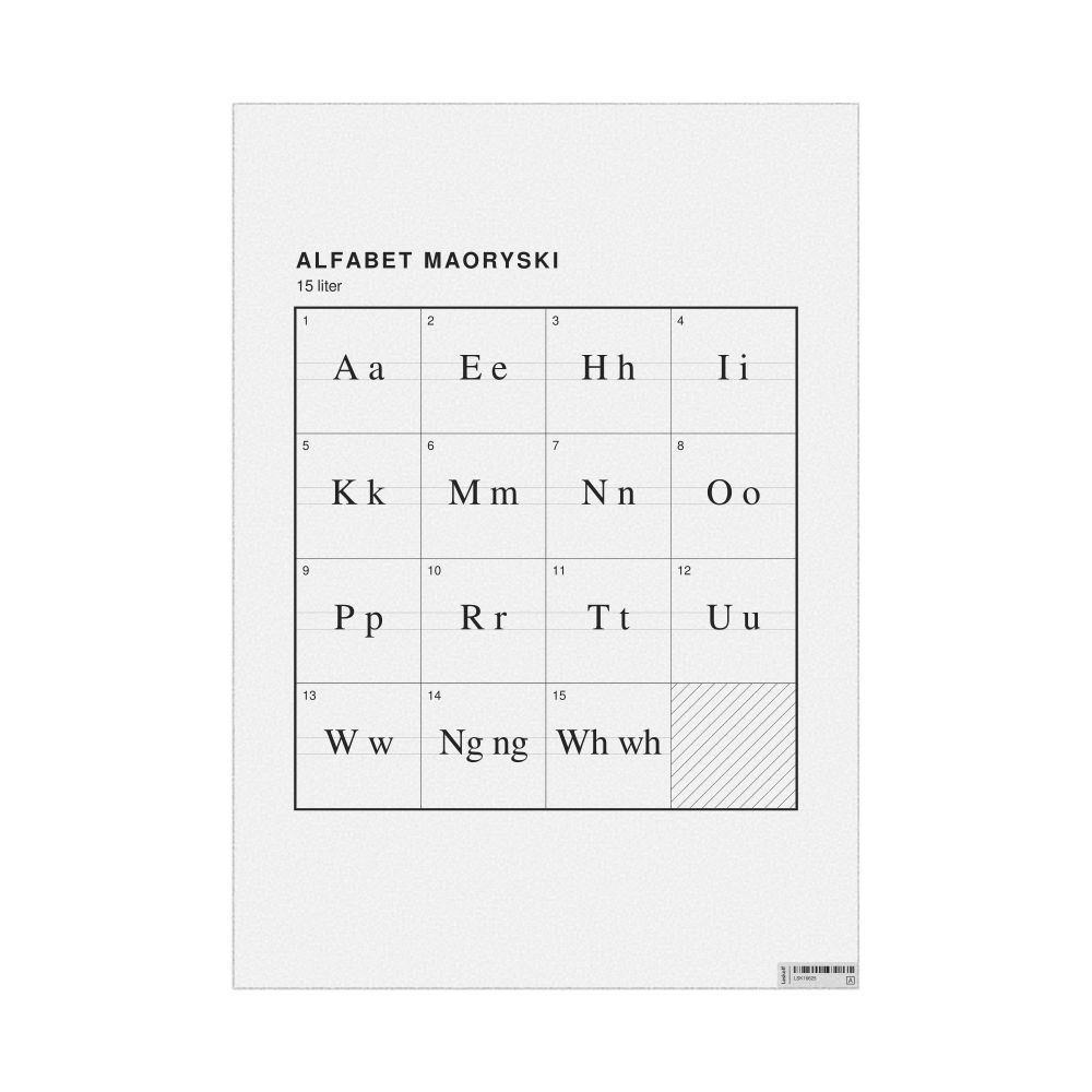 The Māori alphabet chart (the full set of letters) labeled in Polish (Alfabet maoryski) in the 23.4 x 33.1 in (59.4 x 84.1 cm, poster / wall chart) format.