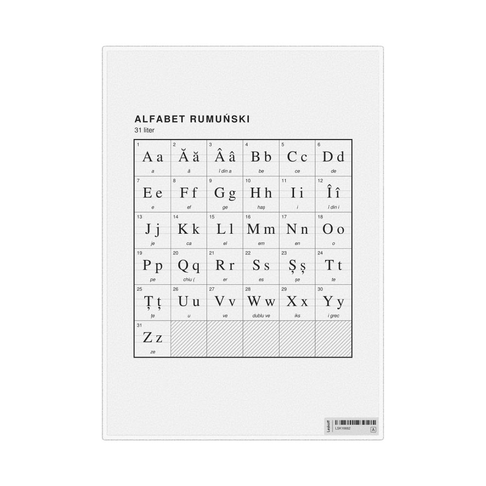 Romanian Alphabet Chart, 23.4 x 33.1 in (59.4 x 84.1 cm, Poster / Wall Chart), Polish-Labeled