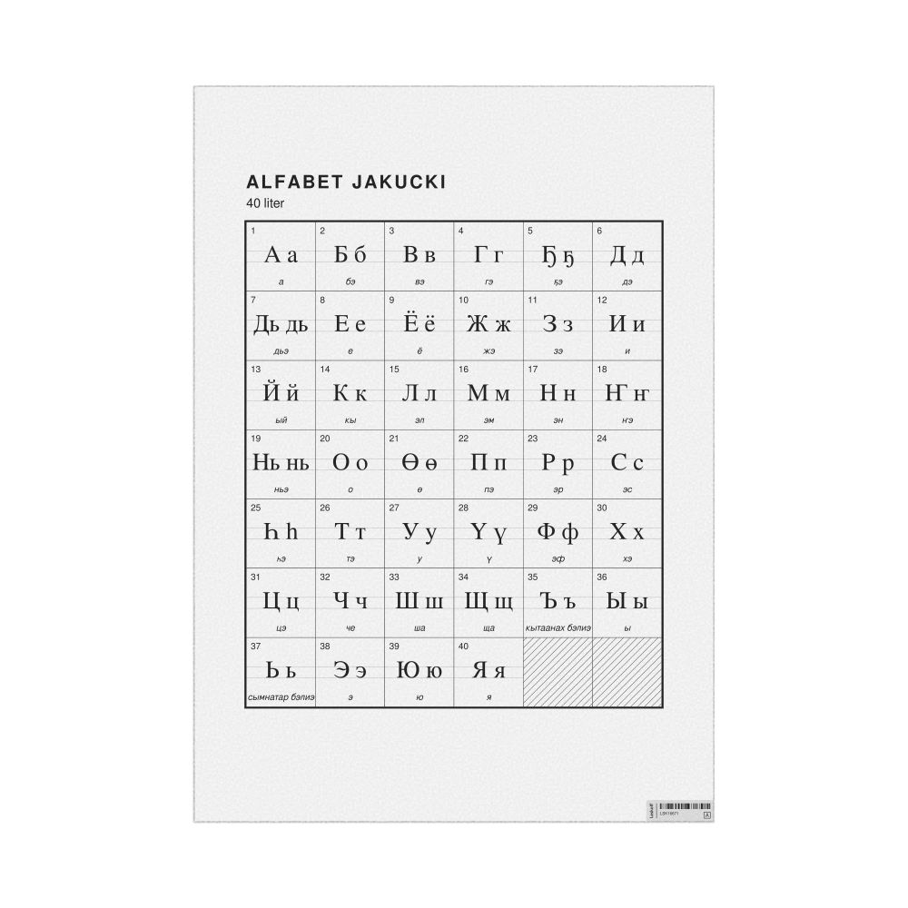 The Yakut alphabet chart (the full set of letters) labeled in Polish (Alfabet jakucki) in the 23.4 x 33.1 in (59.4 x 84.1 cm, poster / wall chart) format.