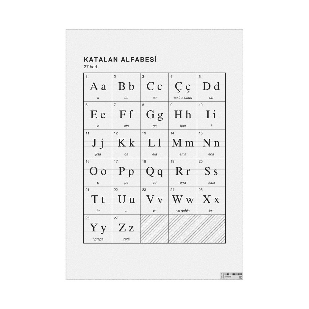 - Linguists and philologists - For both professionals and hobbyists, this alphabet print serves as a piece of linguistic art that presents the character inventory of Catalan as a linguistic (graphemic) dataset. Add this to your Catalan collection to complement your studies and research. A mixture of Catalan letters and Turkish metatext makes it a unique, visually intriguing illustration of linguistic diversity and interaction.