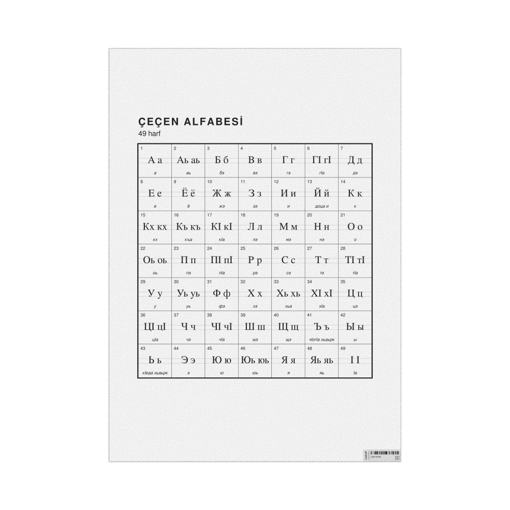 - Linguists and philologists - For both professionals and hobbyists, this alphabet print serves as a piece of linguistic art that presents the character inventory of Chechen as a linguistic (graphemic) dataset. Add this to your Chechen collection to complement your studies and research. A mixture of Chechen letters and Turkish metatext makes it a unique, visually intriguing illustration of linguistic diversity and interaction.