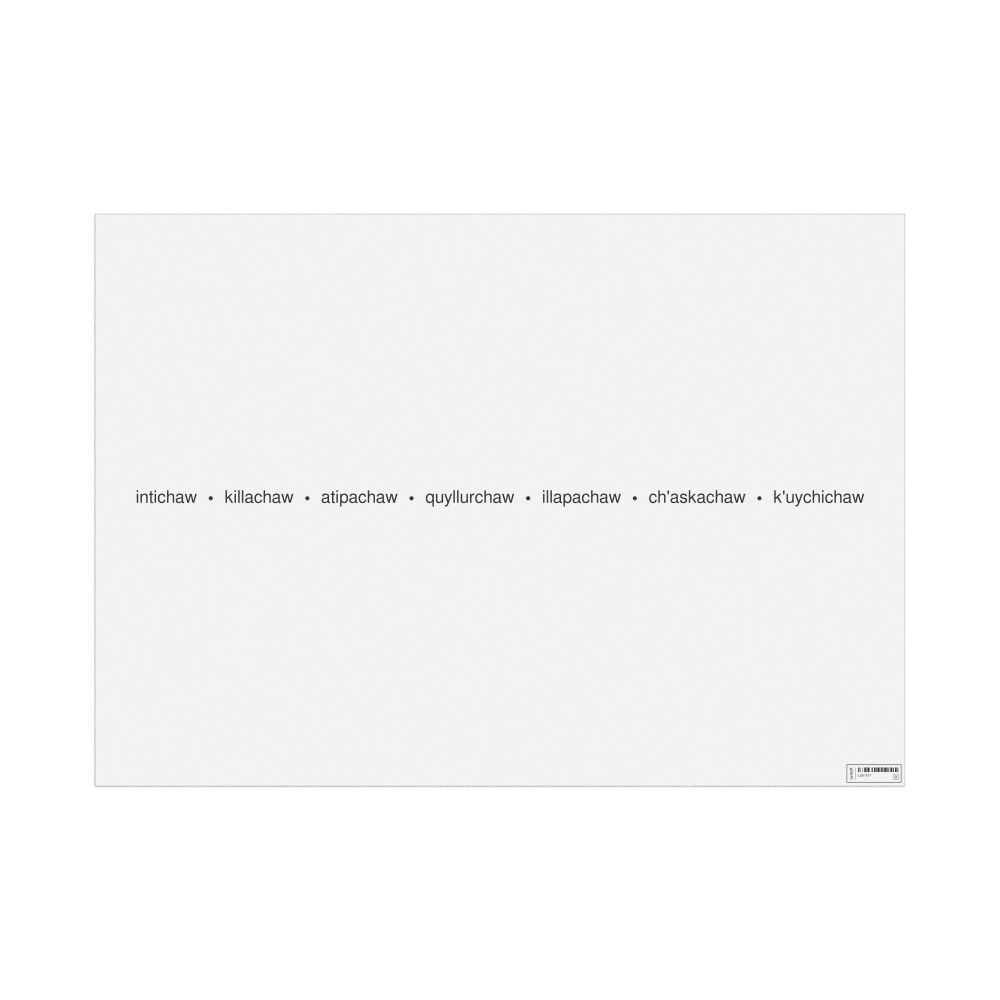 A poster of the days of the week in Quechua (Hunk'ap p'unchawkuna).