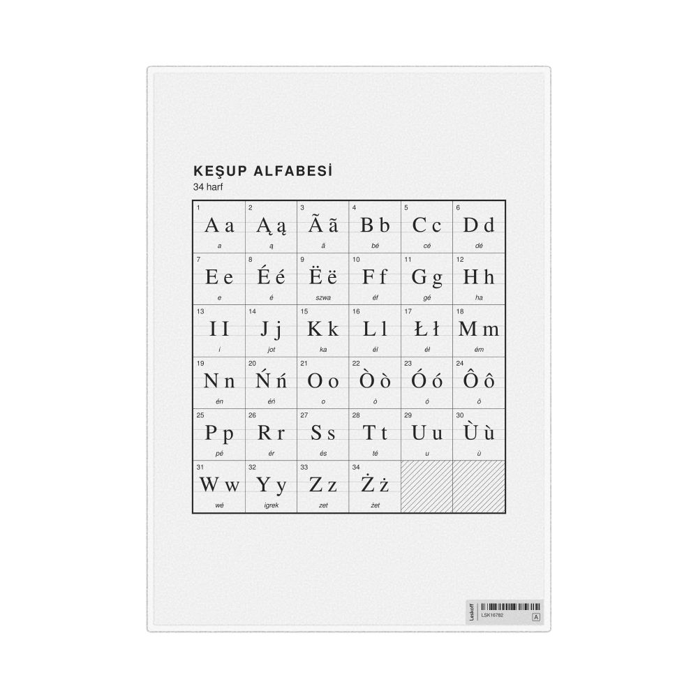 The Kashubian alphabet chart (the full set of letters) labeled in Turkish (Keşup alfabesi) in the 8.3 x 11.7 in (21.0 x 29.7 cm, desk chart, laminated) format.