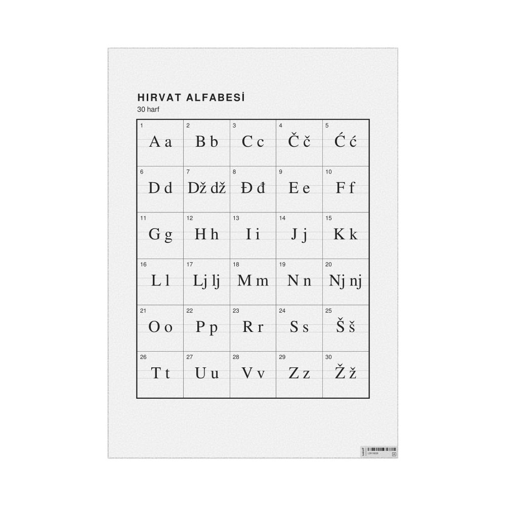 The Croatian alphabet chart (the full set of letters) labeled in Turkish (Hırvat alfabesi) in the 23.4 x 33.1 in (59.4 x 84.1 cm, poster / wall chart) format.