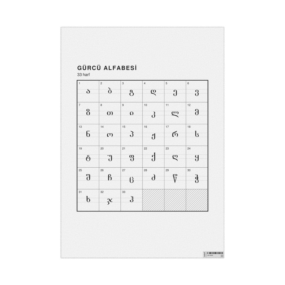 - Linguists and philologists - For both professionals and hobbyists, this alphabet print serves as a piece of linguistic art that presents the character inventory of Georgian as a linguistic (graphemic) dataset. Add this to your Georgian collection to complement your studies and research. A mixture of Georgian letters and Turkish metatext makes it a unique, visually intriguing illustration of linguistic diversity and interaction.
