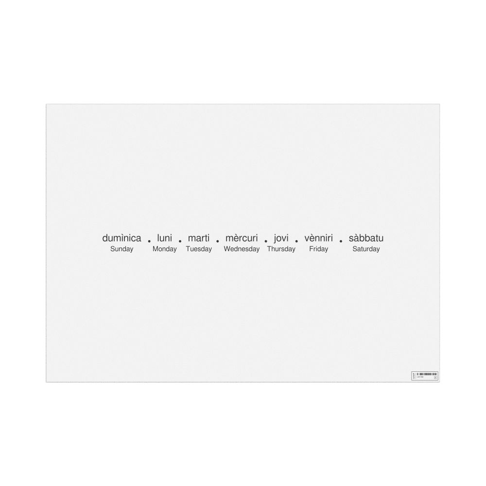 A poster of the days of the week in Sicilian (Jorna dâ simana) with English translations.